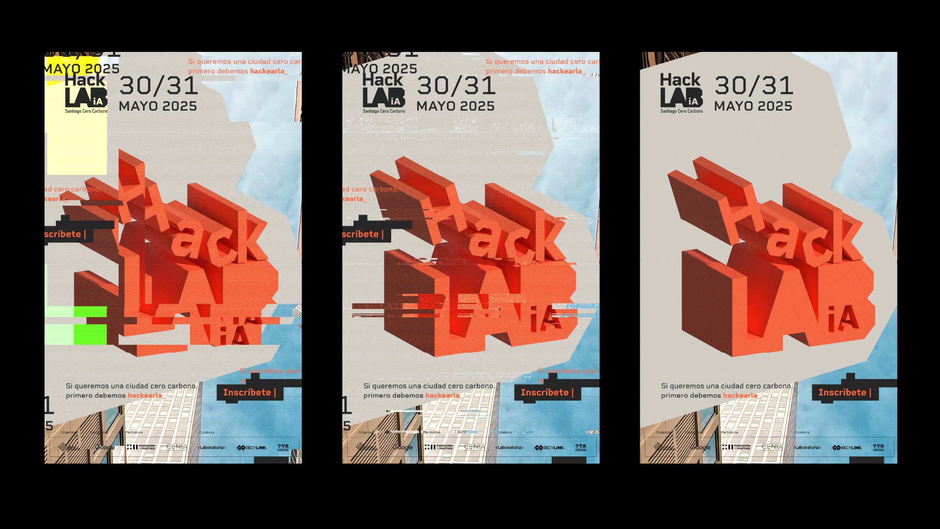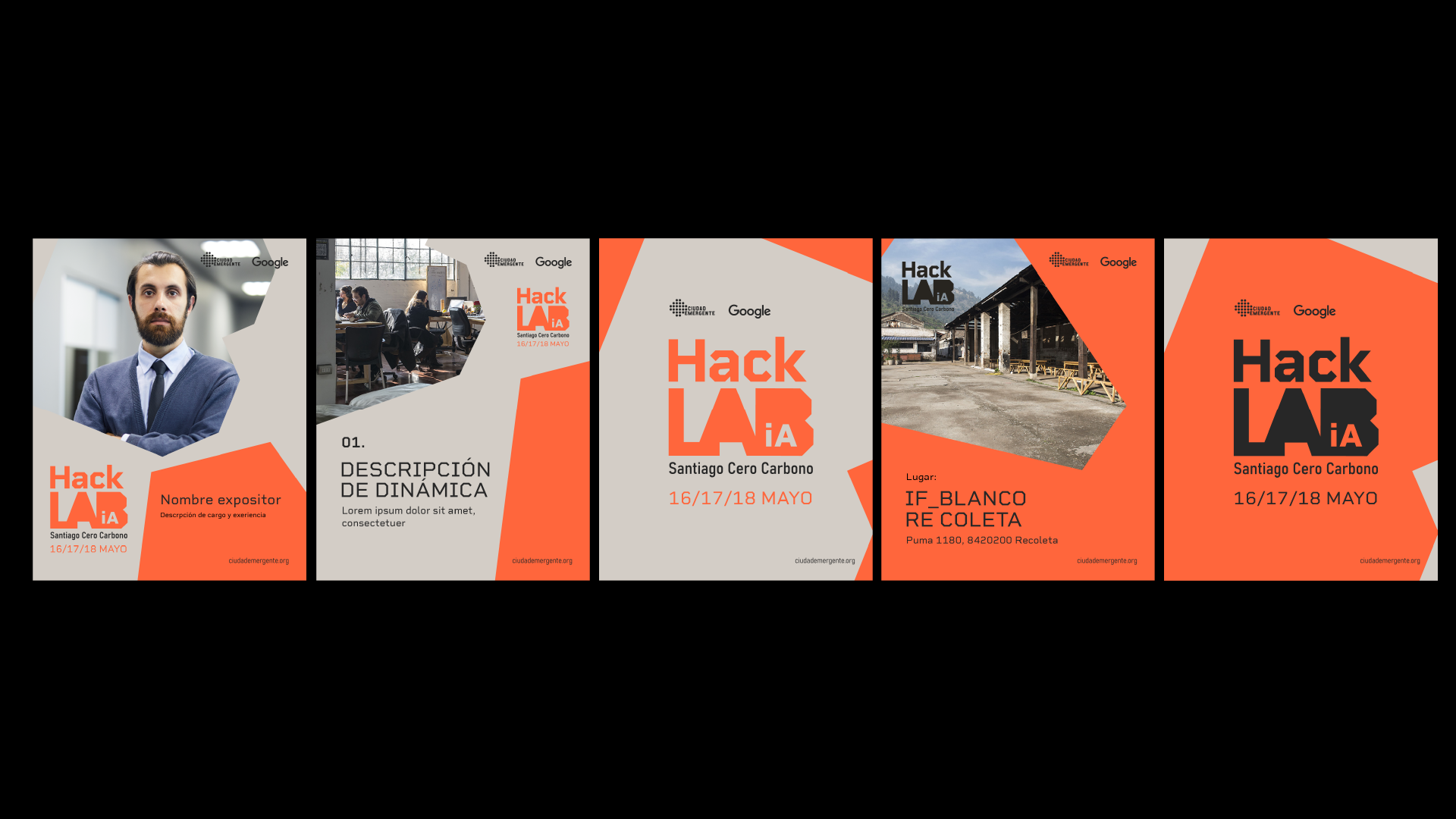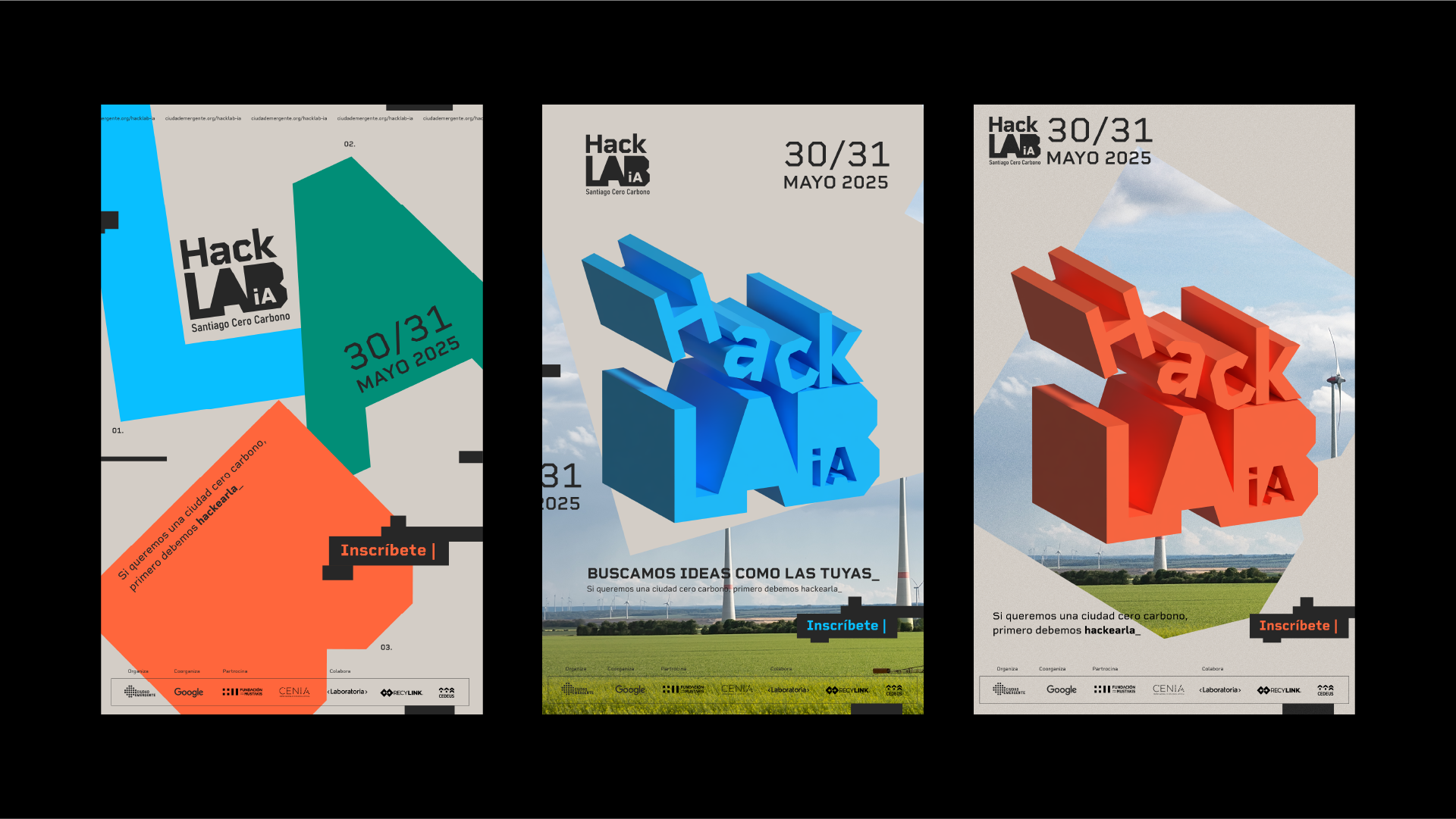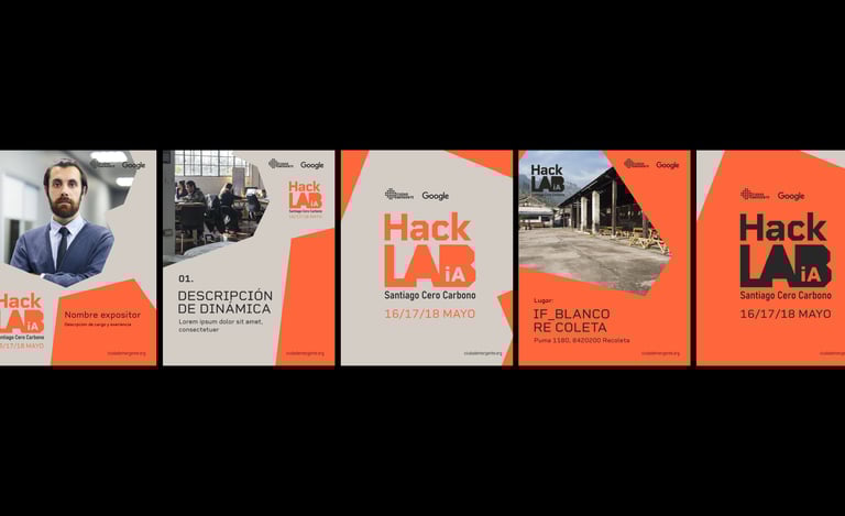 HackLab fue una hackathon impulsada por Fundación Ciudad Emergente, orientada a convocar a distintos actores a pensar soluciones para la descarbonización de Santiago. El desafío consistía en desarrollar una identidad visual capaz de representar la energía, urgencia y colaboración del proceso creativo, evitando los códigos tradicionales de eventos corporativos y acercándose a un lenguaje más experimental, accesible y participativo.